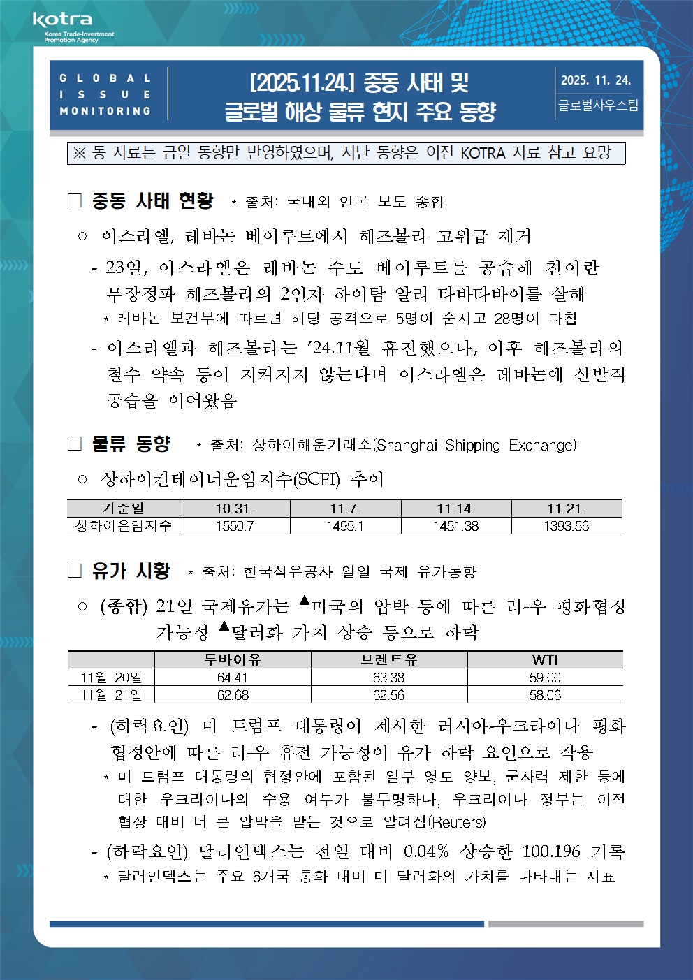 [2025.11.21.] 중동 사태 및 글로벌 해상 물류 관련 현지 동향