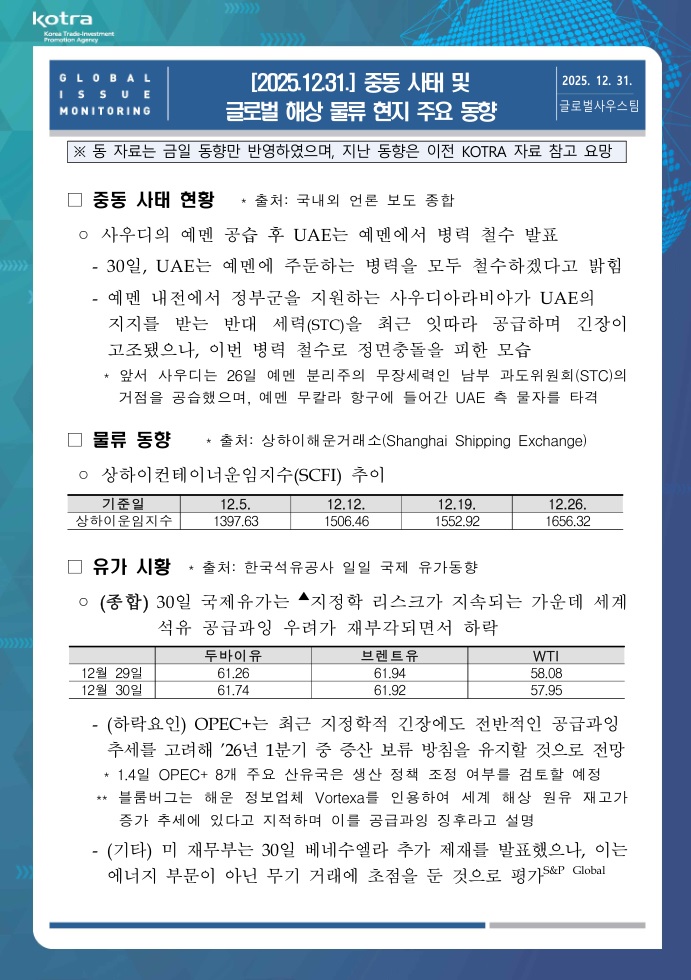 [2025.12.31.] 중동 사태 및 글로벌 해상 물류 관련 현지 동향