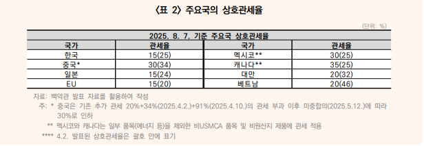 26) Reshoring Initiative(2023)에 따르면 트럼프 1기 행정부에서 추진했던 제조업 부흥 정책은 리쇼어링 및 외국인직접투자(FDI)로 인한 미국 내 신규 고용은 2023년 기준 연간 36만 5,700명 이상의 고용 창출 효과를 나타냈으며, 특히 한국의 경우 외국인직접 투자에 따른 고용 창출이 전체 고용 창출의 14%(2만 360명)로 주요국 중 가장 높은 비중을 차지한 것으로 나타남. 27) 미국 무역대표부(USTR)는 관세율 변화에 따라 상대국의 미국 수출이 감소하고, 그 감소 폭이 미국의 해당국 수출액과 같아지는 수준의 관세율을 상호관세로 정의하였고, 이를 무역수지 적자 및 수입액을 기반으로 산정하였다. (https://ustr.gov/issue-areas/reciprocal-tariff-calculations) 28) 주요국 중국, 미국, 일본의 상위 5대국 및 5대 품목 비중은 각각 중국(38.9%, 20.8%), 미국(48.1%, 24.9%), 일본(57.2%, 32%)으로 나타남 (양주영 외, 2024)