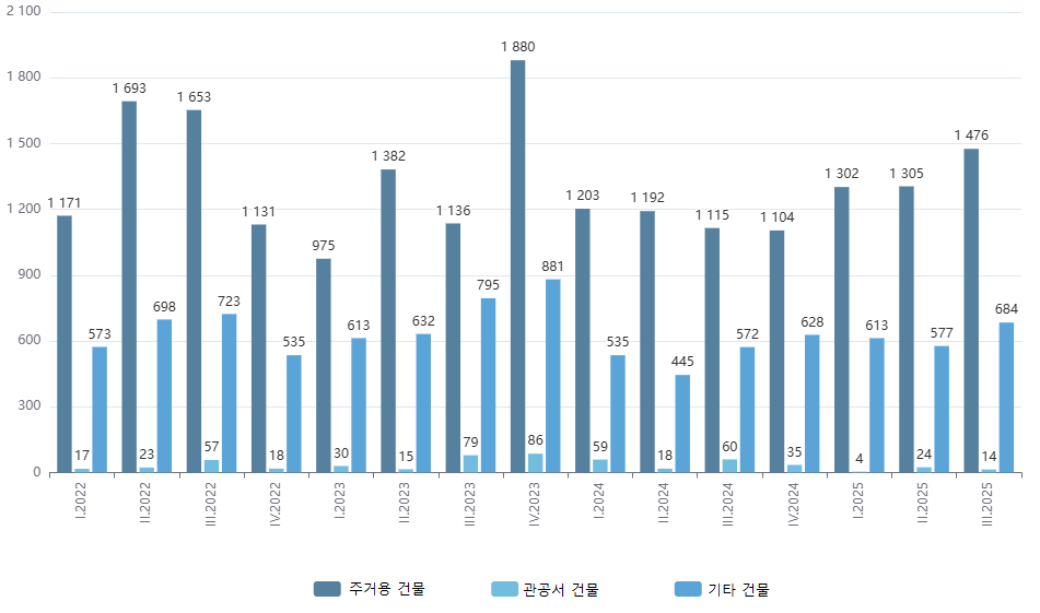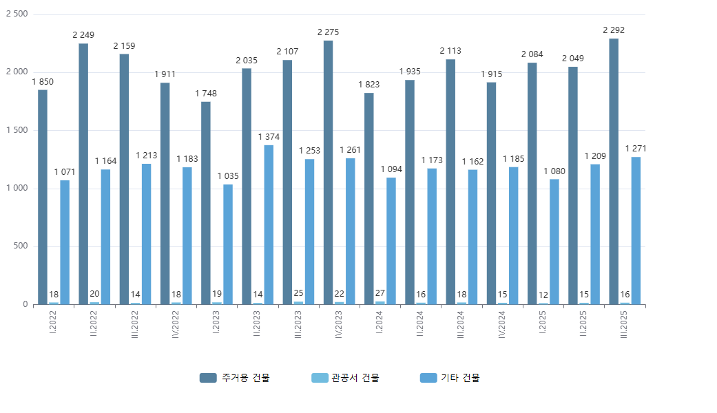 <2022~2025년 분기별 신규 건축 허가 건수>