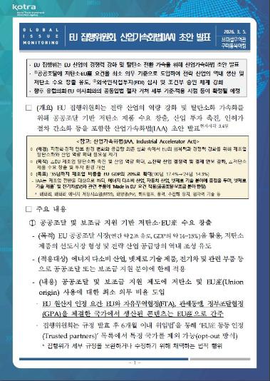 핵심 원자재 공급망 다각화를 위한 EU의 적극적 통상 행보