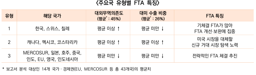 분석에 따르면 ① 대미 수출 의존도와 ② 내수시장 규모 같은 경제적 지표에 따라 국별로 상이한 FTA
