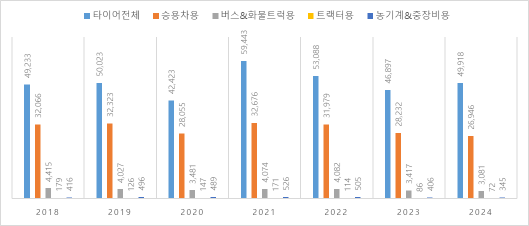 2024년 폴란드의 타이어 생산량은 약 4992만 개로, 전년 대비 6.4% 증가하며 회복세를 나타냈다. 타이어 생산은 자동차 산업의 경기에 영향을 크게 받는 산업으로 단기 등락이 존재하지만, 중장기적으로는 연평균 2~3%의 안정적인 성장세를 이어가고 있다. 이에 따라 주원료인 스티렌-부타디엔 고무(SBR, HS 코드 4002.19)의 산업 수요 역시 구조적으로 뒷받침되고 있다.