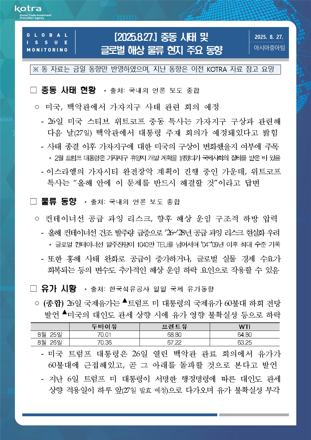 [2025.8.27.] 중동 사태 및 글로벌 해상 물류 관련 현지 동향