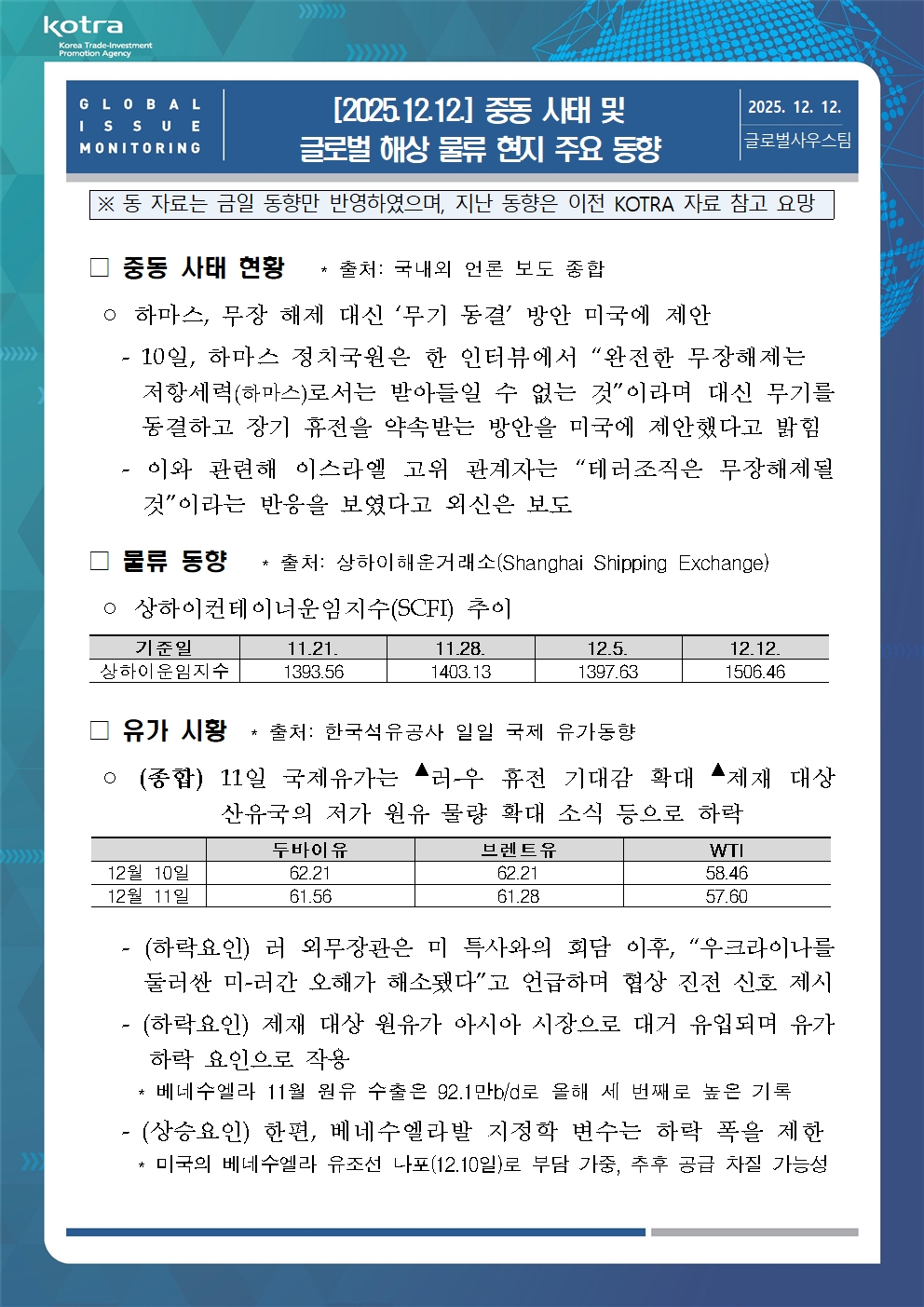 [2025.12.12.] 중동 사태 및 글로벌 해상 물류 관련 현지 동향