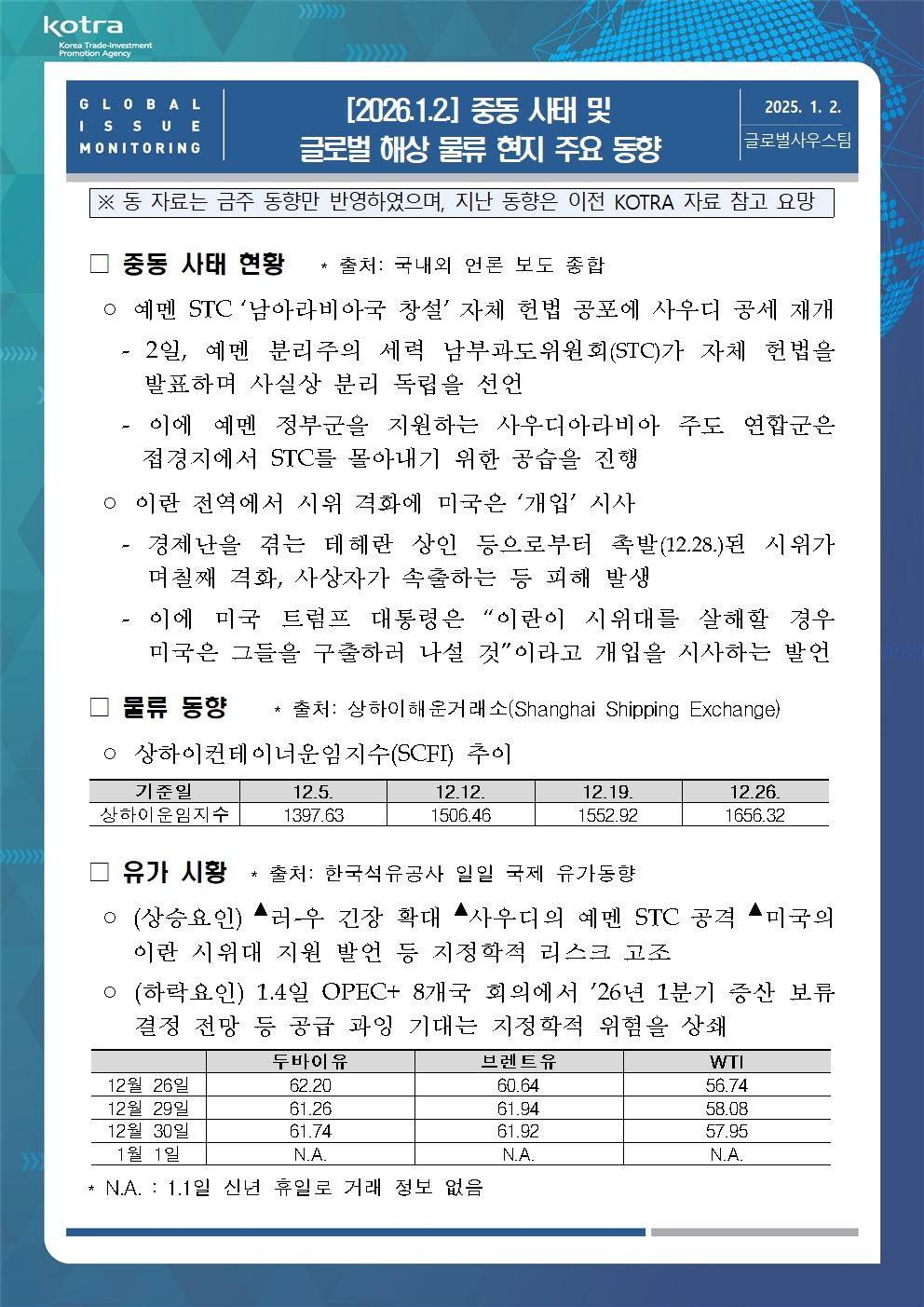 [2026.1.2.] 중동 사태 및 글로벌 해상 물류 관련 현지 동향