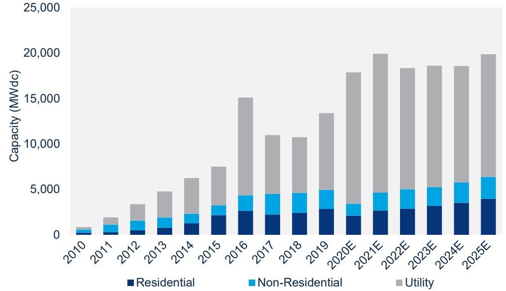 미국의 부문별 태양광 설치 예측