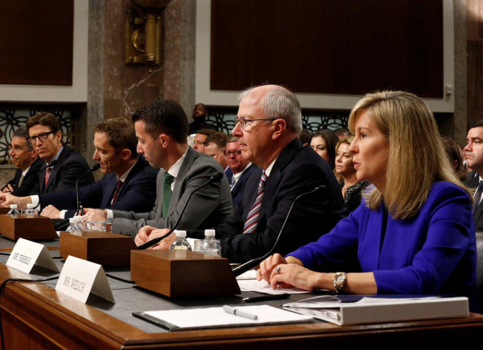 미국 상원 청문회에서 소비자 개인정보보호 및 정부 규제에 대해 논의하고 있는 실리콘밸리의 테크 기업 경영진