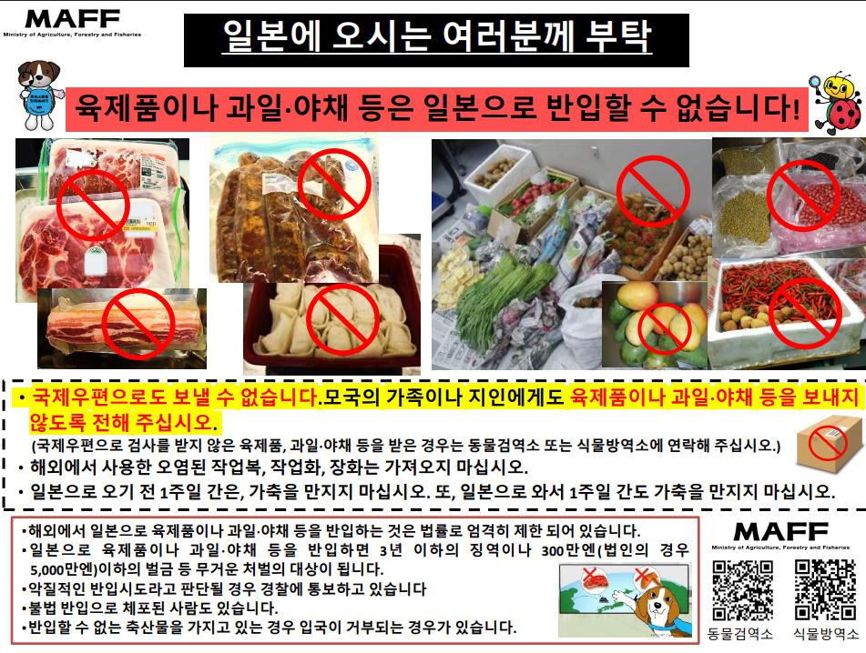 * 수입금지지역과 물건 : https://www.maff.go.jp/aqs/hou/43.html