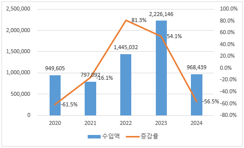 <중국 전기자동차(HS Code:870380) 주요 수입 동향>