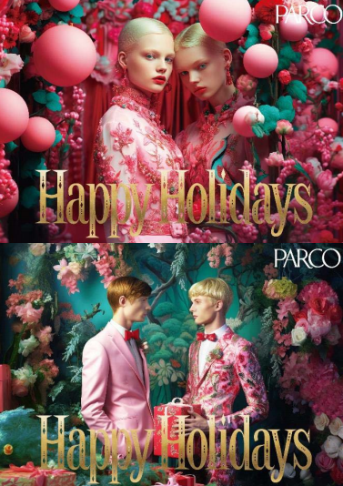 (주)이토엔(伊藤園)에서는 일본 최초로 'AI모델'을 기용해 광고 2편을 제작했으며, 2편에서는 AI 모델의 목소리에 음성생성 AI를 활용했다. 또한, (주)파르코(PARCO)는 당사 백화점 광고에 삽입된 나레이션과 음악 등 요소를 전체적으로 AI를 통해 제작했다.