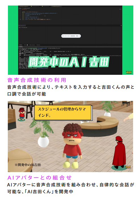 (AI 아바타와의 조합) AI 아바타에 음성합성기술을 조합해 자율적인 회화가 가능한 'AI 요시다군'을 개발 중