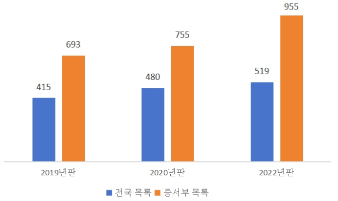 <중국 외국인 투자 장려산업 목록 항목 수 비교>