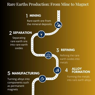 중국, 희토류 채굴 70%, 정제 85%, 자석 생산 90% 이상 점유