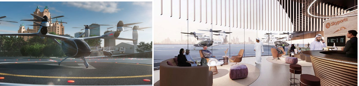 RTA는 지난 2024년 11월, 2026년 1분기 항공 택시 서비스 상업 운영을 위한 이착륙용 버티 포트 건설 개시를 발표했다. 버티 포트는 두바이 국제공항(DXB)과 두바이 마리나, 팜주메이라, 다운타운 총 4곳의 지역에 건설될 예정으로, 완공 시 두바이 국제공항-팜주메이라 간 이동시간은 약 10분(자동차의 경우 약 45분 소요)으로 단축된다.