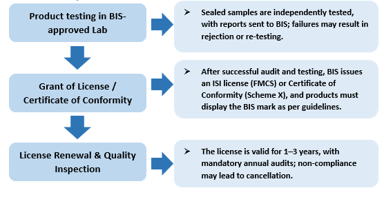 이와는 별개로, 인도표준국(BIS)은 인도 전역에 걸쳐 수색 및 압수 방식으로 비규격 제품에 대한 단속을 강화하고 있다. 최근 하이데라바드의 한 공장에서는 BIS법(2016년) 위반으로 2635개의 휴대용 믹서기와 위조 ISI 마크가 부착된 강철 문 경첩이 압수됐다. 그레이터 노이다 지역에서는 합법적인 인증 없이 생산 및 보관된 전선들이 압수됐으며, 플립카트, 아마존, 퍼스트크라이(FirstCry) 등 대형 이커머스 업체들의 물류창고 역시 BIS 당국의 현장 수색 조사 대상이 됐다.