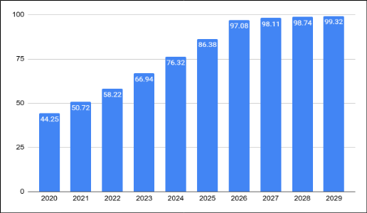 <베트남 소셜 미디어 사용자 추이 (2020~2029)>