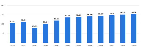 <에콰도르 콘택트렌즈 시장 규모(2018~2029년)>