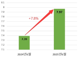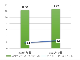 모바일 인터넷 비즈니스 서비스 제공업체인 ‘QuestMobile’의 2025년 6월 데이터에 따르면, 중국 모바일 인터넷 사용자는 12억6700만 명에 달해, 전년 동기 대비 2.5% 증가했다. 또한, 1인당 일일 평균 사용 시간도 전년 동기 대비 7.8% 증가한 7.97시간으로 집계됐다.