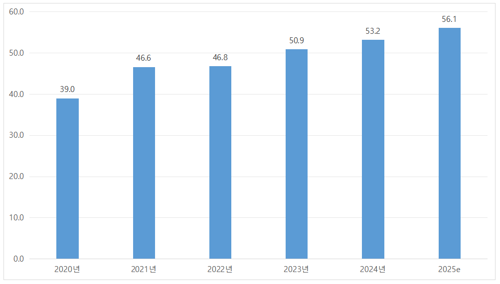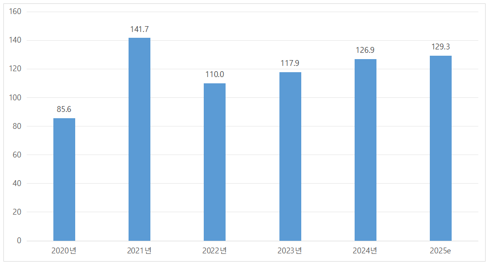 <2020~2025년 글로벌 디스플레이 구동 칩 시장 규모>