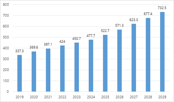 베트남 여성 위생용품 판매액은 2019년 3억3730만 달러에서 2024년 4억7770만 달러로 약 41.2% 성장했다. 최근 5년간 연평균 7% 내외의 안정적인 증가세를 기록했으며, 2029년에는 7억3250만 달러에 이를 것으로 전망된다. 이는 여성 위생용품에 대한 전반적인 수요가 장기적으로 꾸준히 확대될 것임을 보여준다.