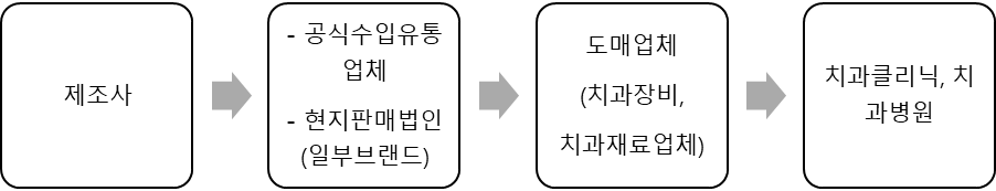 수입된 임플란트 제품은 도매상이나 치과 장비 공급업체 등을 거쳐 최종적으로 치과 병원, 개원 클리닉으로 전달된다. 더불어 제조사와 유통업체는 치과 의사 대상의 교육 프로그램, 임상 세미나, 워크숍 등을 운영해 브랜드 인지도와 시장 점유율을 높이는 전략을 병행하고 있다. 최종적으로 환자는 이러한 병의원을 통해 임플란트 시술을 받게 되는 구조다.