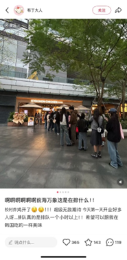 2025년 상반기 선전에 최초 매장을 오픈한 해외 브랜드 중에서는 미국 브랜드가 8개로 가장 많고 뒤를 이어 한국 브랜드가 6개로 두 번째로 많다. 상위 4개 국가인 미국, 한국, 일본, 이탈리아 브랜드가 전체 해외 브랜드 중 68%를 차지한다. 해외 브랜드 매장의 분야를 살펴보면, 의류 및 악세서리가 41%로 가장 많고, 화장품 및 향수 브랜드가 17%를 차지해 두 번째로 많다. 요식 브랜드는 10%를 차지한다. 2025년 2월, 한국 치킨 브랜드 ‘교촌치킨 선전 1호점’이 치엔하이 완샹청(前海万象城)에 오픈했다. 선전시 최초 매장으로 오픈 첫 날부터 1시간 이상 줄을 서야 먹을 수 있을 정도로 인기가 대단했다. 중국의 대표 SNS 플랫폼 샤오홍수(小红书)에서도 교촌치킨 후기와 메뉴 소개에 대한 게시글이 많이 게재되면서 한국 브랜드의 인지도를 실감할 수 있었다.