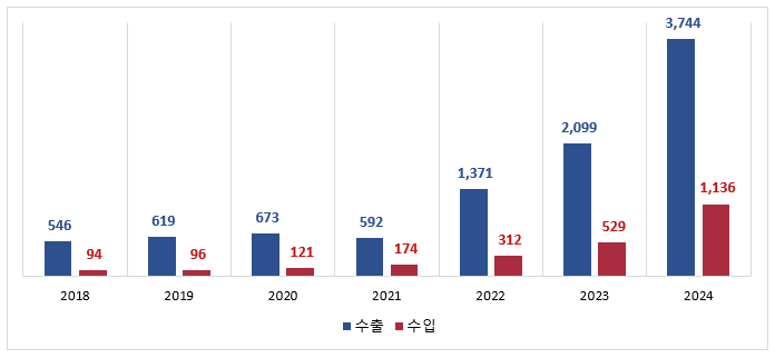 유럽 재무장 기조와 우크라이나 수요 확대 속 수출입 6배 증가