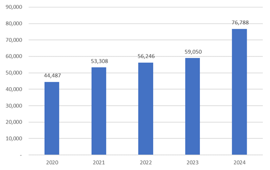 2024년 태국 전자산업 시장 규모는 약 768억 달러로 전년 대비 약 30% 성장, 같은 해 생산은 645억 달러(+21%), 수출은 492억 달러(+20%), 내수는 146억 달러(+20%)를 기록
