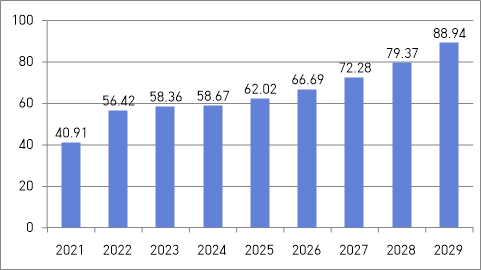 시장조사기관 Statista에 따르면 우즈베키스탄의 스마트시티 시장은 2019년 정부의 스마트시티 도입에 관한 내각령이 최초로 발표된 이후 2021년 4091만 달러에서 2029년 8894만 달러 규모로 향후 10년 내 두 배 이상 성장할 것으로 전망된다.