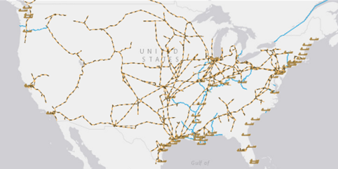 한국에서 정제된 항공유는 주로 초대형 유조선을 통해 미국 서부나 미국만(Gulf of America) 항구로 운송된 뒤, 항만 인근 탱크터미널에 하역되고 세관 통관을 거친다. 이후 미국 내에서는 여러 방법으로 최종 소비단계까지 수송되는데, 주요 공항까지 직접 연결하는 송유관(60%)망이 주요 수송 수단으로 활용되고 있으며, 이외에는 바지선과 내수선(30%), 철도(5%), 트럭(5%)이 공항 인근 단거리 수송이나 파이프라인 접근이 어려운 지역을 책임진다.