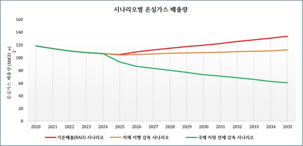 <2035년 기준 NDC 3.0 시나리오별 배출량 감축(기준배출 대비)>