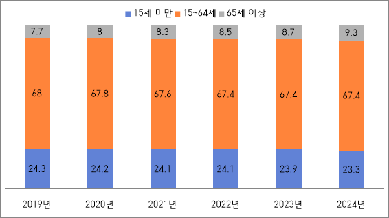 <2019-2024년 베트남 연령별 인구 비율>