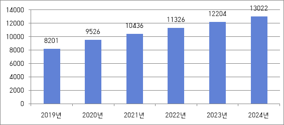 <2019-2024년 베트남 물티슈 판매량>