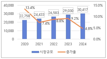 <2020~2024년 중국 소프트웨어 제품 시장규모>