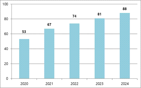 러시아 가구·목재가공산업협회(АМДПР)에 따르면, 전체 가구 생산량은 2020년 4370만 개에서 2024년 7570만 개로 증가했으며, 생산액은 같은 기간 2270억 루블에서 5220억 루블로 확대됐다.