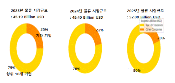 <베트남 물류 시장 규모 및 상위 10대 기업 시장 비중>