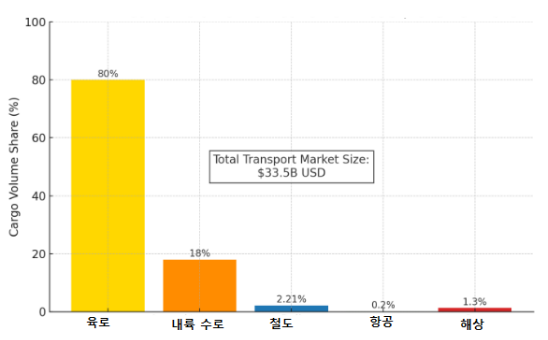 베트남은 길게 뻗은 하천 네트워크를 기반으로 내륙 수로 운송이 발달해 있으며, 전체 화물 물동량의 약 18%를 차지한다. 그러나 운송 효율성 제약으로 시장 규모는 상대적으로 작아 2025년 약 6억 달러 내외에 그칠 것으로 추산된다.