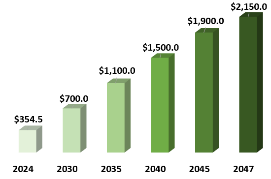 세계식품인디아(World Food India) 보고서에 따르면, 인도의 식품가공산업은 2024년 3545억 달러 규모에서 2030년 7000억 달러로 급성장할 전망이다. 인도상공회의소(PHD Chamber of Commerce and Industry)에 따르면, 이 시장은 2035년 1조1000억 달러, 2040년 1조5000억 달러, 2045년 1조9000억 달러, 2047년에는 2조1500억 달러에 이를 것으로 예측된다.