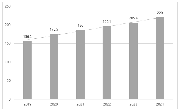 IMARC 그룹의 최근 보고서에 따르면, 말차를 포함한 사우디아라비아의 녹차 시장 규모는 1억 4014만 달러였으며, 2033년까지 2억 2924만 달러로 성장할 것으로 예상된다. 특히 포장 녹차의 수입액은 2020년에서 2023년 사이에 거의 두 배로 증가하며, 꾸준한 성장세를 보이고 있다. 유로모니터에 따르면, 2019년 말차 매출은 약 1억 5615만 달러에서, 2024년에는 약 2억 2000만 달러로 증가했다. 이는 5년간 약 6380만 달러 증가, 약 40.9% 성장한 수치다.