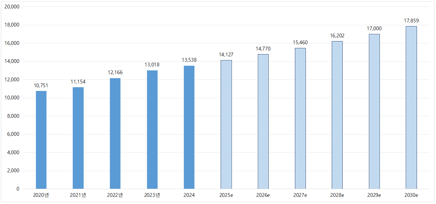 <2020~2030년 중국 전선 케이블 시장 규모 추이>