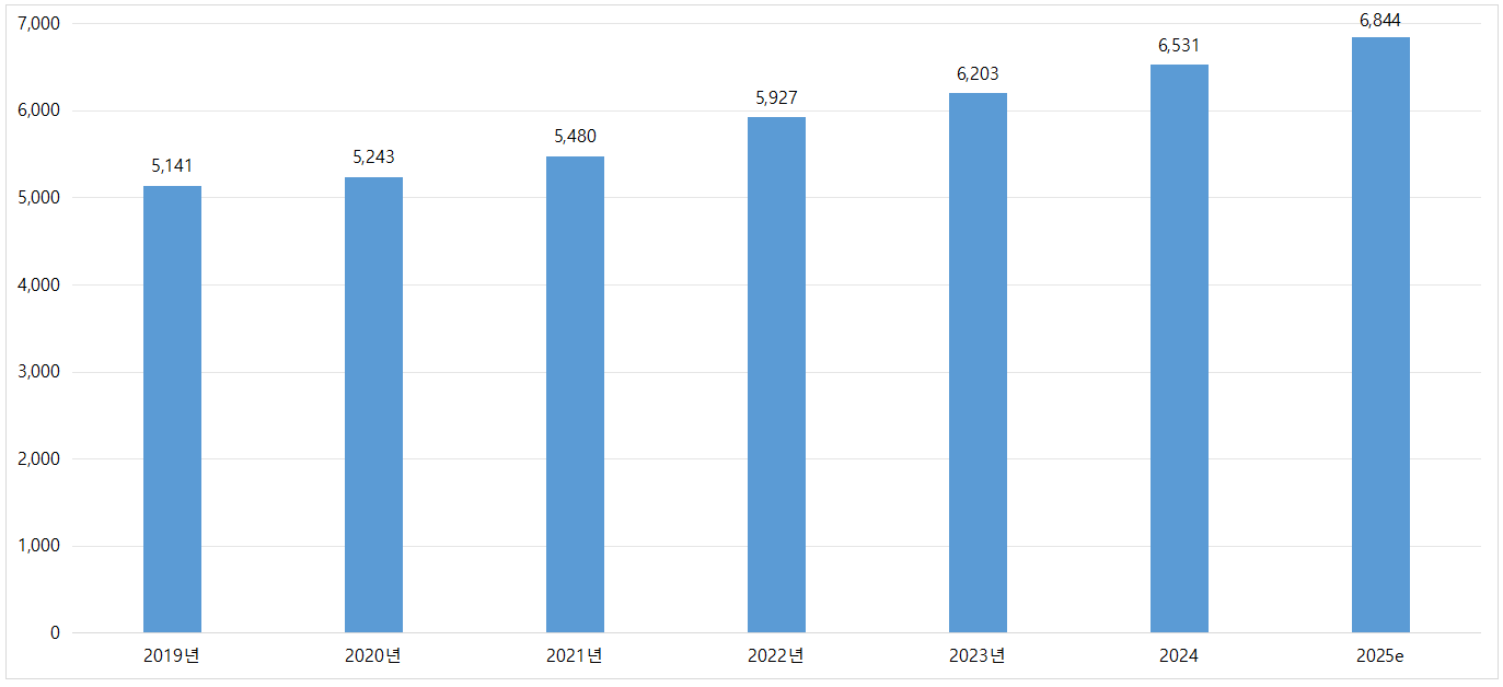 2025년 전선 케이블 생산량은 6,844만 ㎞에 이를 것으로 예상