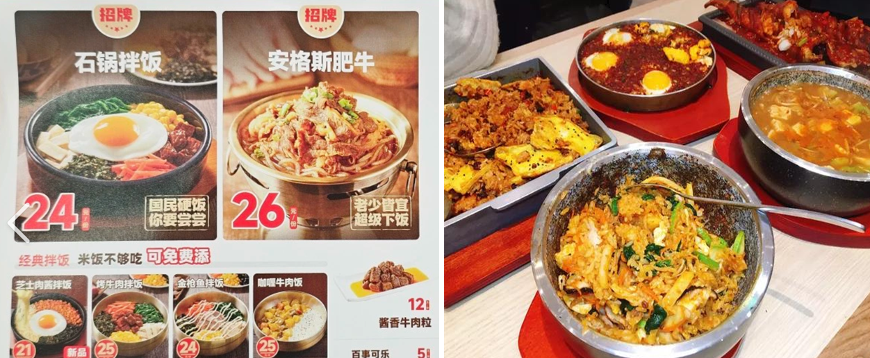 <밀키트를 주로 활용하는 미촌비빔밥(米村拌饭)의 대표 메뉴 실제 모습>