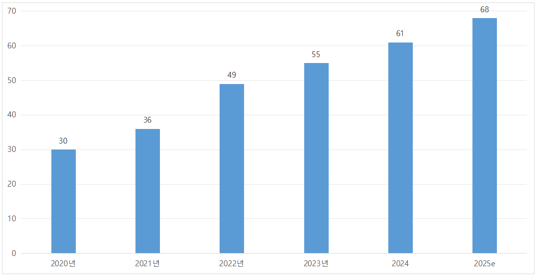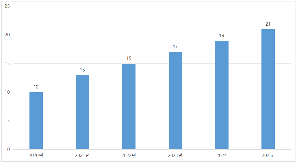 <2020~2025년 글로벌 PEEK 소재 시장 규모>