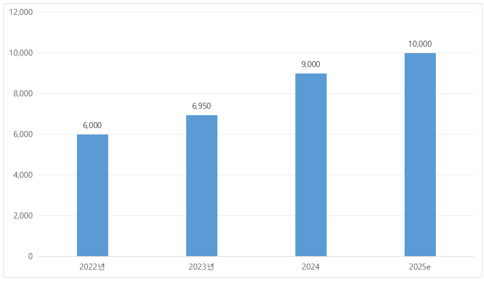 <2022~2025년 중국 PEEK 소재 생산가능량(생산능력) 변화>