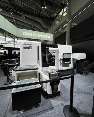 이러한 통합 자동화 솔루션을 선보인 대표적인 기업으로는 세계적인 공작기계 제조사인 DMG MORI를 꼽을 수 있다. 동사는 '미래의 제조(Manufacturing the Future)'라는 모토 아래 하노버 전시장 2관 전체를 'DMG MORI World'라는 거대한 쇼케이스로 꾸몄다. 항공우주, 모빌리티, 금형, 의료, 반도체 등 5대 핵심 산업 분야를 중심으로 공정 통합, 자동화, 디지털 전환(DX), 녹색 전환(GX)을 아우르는 '머시닝 트랜스포메이션(MX)' 전략을 구체화했다. 8개의 세계 최초 공개 모델을 포함한 40여 대의 하이테크 장비와 33개의 자동화 솔루션을 전시하며 압도적인 규모를 자랑했다.