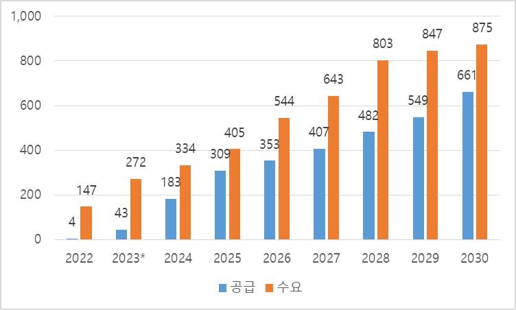 <2022~2030년 유럽 양극재 공급 및 수요 현황 및 예측>