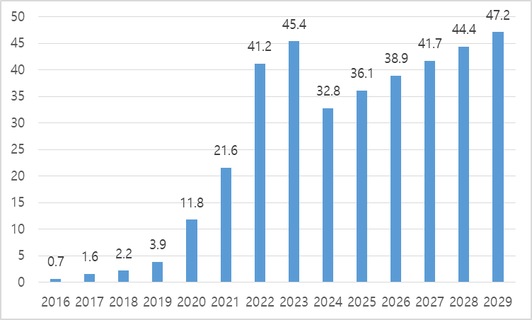 <2016~2029년 독일 EV 매출 현황 및 예측>
