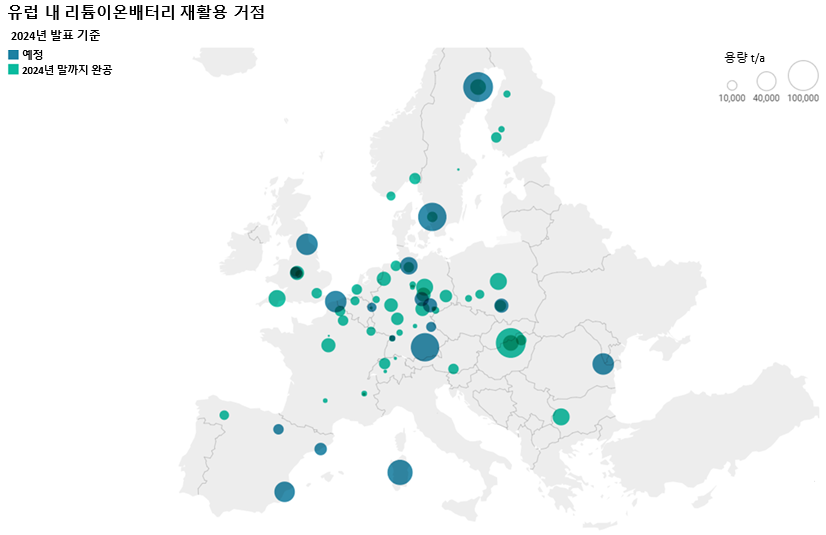 <유럽 내 리튬이온배터리 재활용 거점 (2024년 기준)>