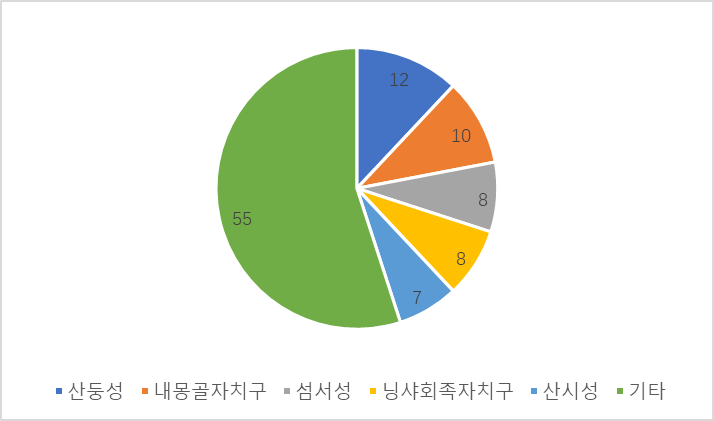 석탄 등 에너지가 풍부하고 석탄화공 산업이 발달했으며, 화석연료 기반 수소에너지가 풍부함. 동시에 중국 신에너지 중점 지역으로 풍부한 풍력, 태양광 자원을 보유하고 있어 그린 수소 생산 잠재력을 지님. 수소의 주요 생산지인 서북 지역은 동부 수소 수요 시장과 거리가 멀어 수소의 장거리 운송과 인프라 구축 문제를 해결해야 함.